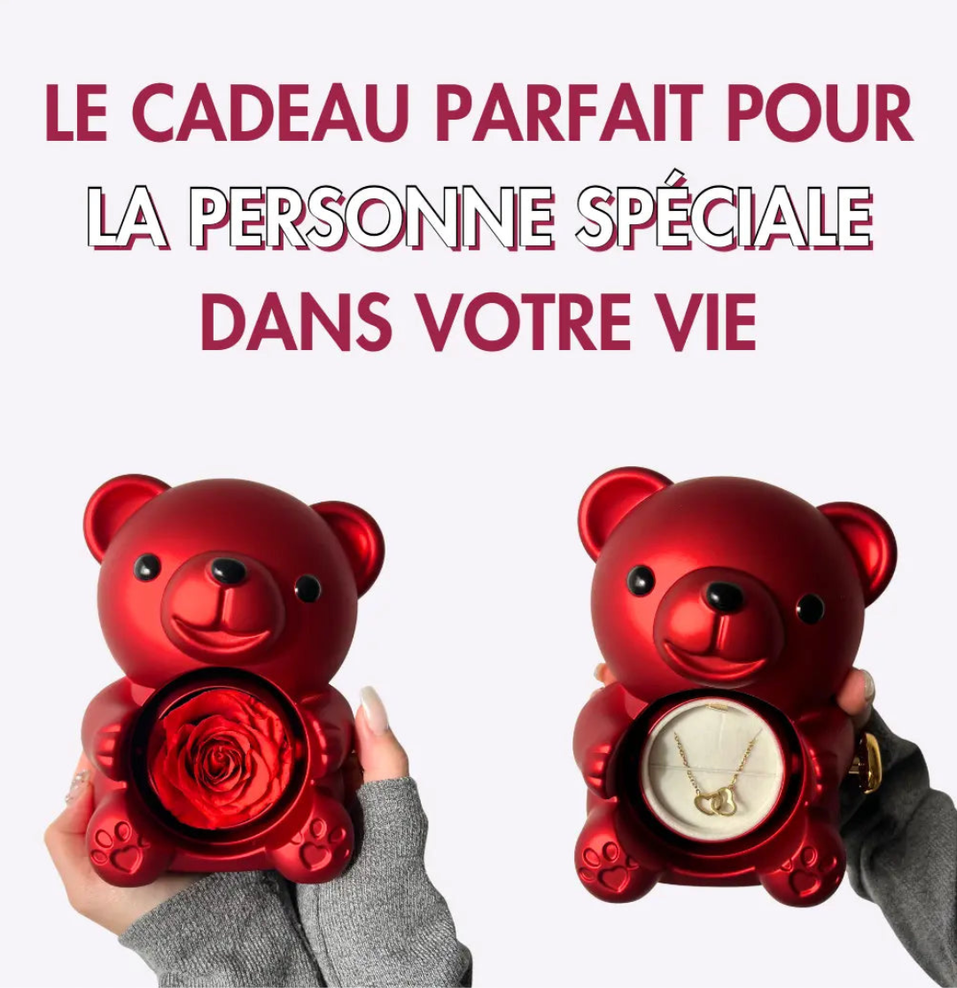 Notre Coffret Ours Éternel avec collier personnalisé caché est un cadeau qui dure toute une vie. Doté d'une véritable rose préservée qui durera toujours, ce cadeau est le symbole parfait de l'amour éternel.