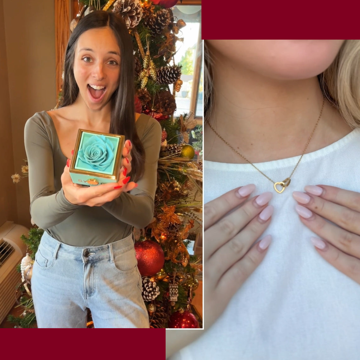 Faites pivoter la rose pour révéler un collier fait main et personnalisé avec les gravures de votre choix.